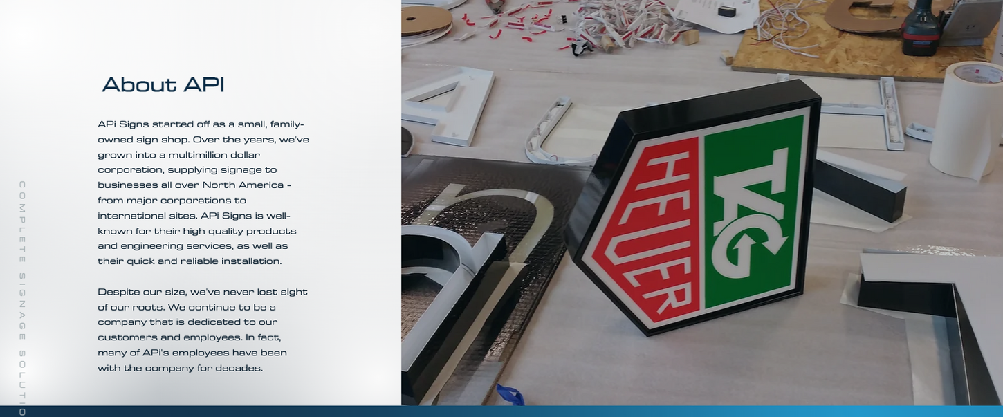 APi Signs started off as a small, family-owned sign shop. Over the years, we've grown into a multimillion dollar corporation, supplying signage to businesses all over North America - from major corporations to international sites. APi Signs is well-known for their high quality products and engineering services, as well as their quick and reliable installation.
